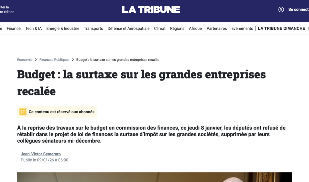 Au centre des négociations budgétaires avec le gouvernement, le Parti socialiste a proposé un amendement visant à maintenir la contribution exceptionnelle sur les grandes entreprises, en l’état, pour 2026 « sans réduire le taux » et ainsi récupérer 8 milliards d’euros. « Il faut savoir que la surcôte de l’impôt sur les sociétés (IS) ne fait que rétablir un taux effectif d’IS à 25 % pour les grandes entreprises qui est le même taux que celui que payent les petites et moyennes entreprises (PME), alors qu’aujourd’hui il est à 13 %, selon l’Insee. Ce n’est qu’une mesure de justice entre les entreprises », appuie la parlementaire PS Estelle Mercier.