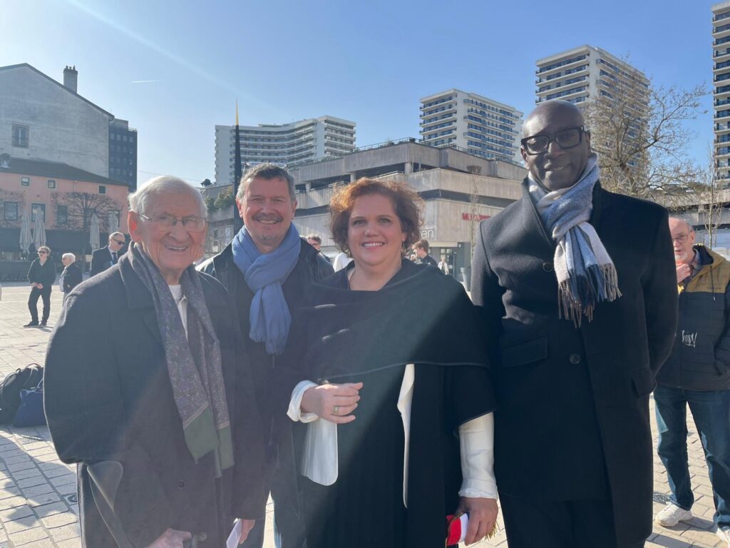 Ce 5 mars, j’étais présente Place Charles III à Nancy pour la cérémonie d’hommage rendue à la mémoire des 300 victimes des rafles des 2 et 5 mars 1943, en présence de Stefan Lewandowski, dernier déporté nancéien survivant.