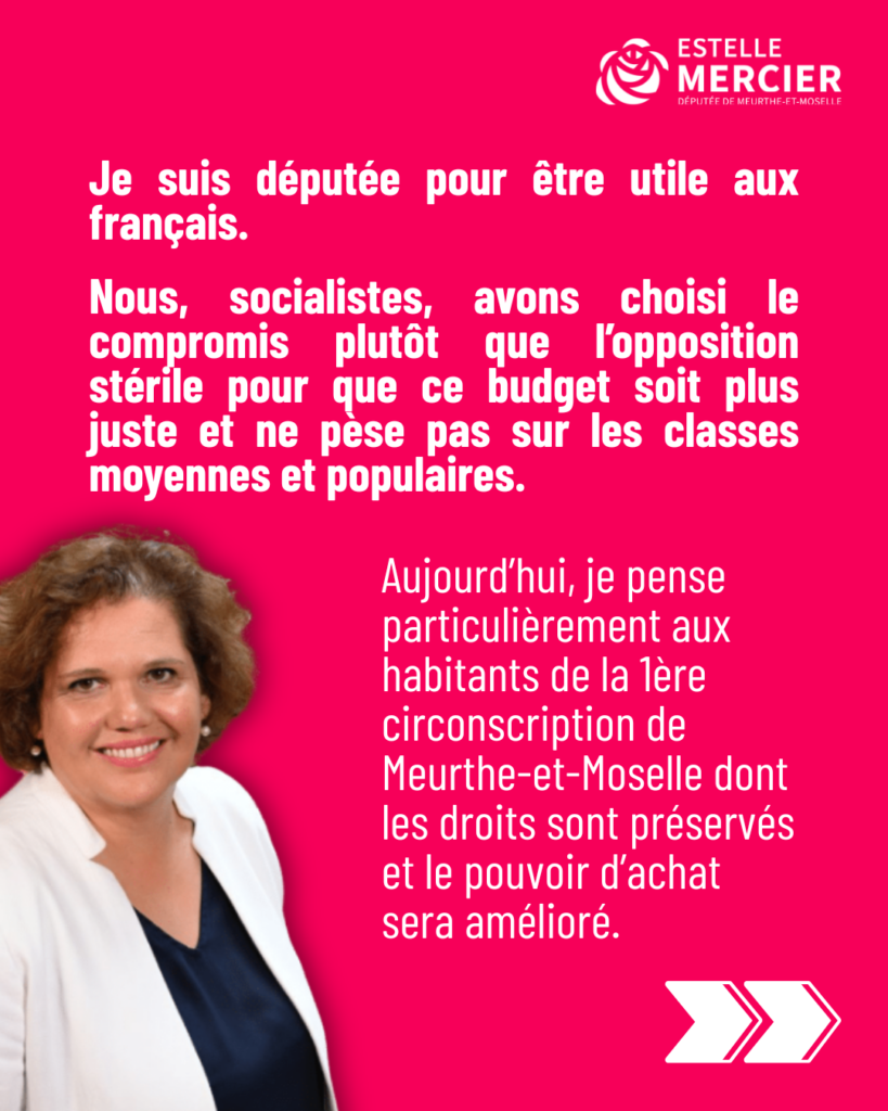Le budget étant désormais adopté, je pense particulièrement aux habitants de la 1ère circonscription de Meurthe-et-Moselle dont les droits sont préservés et le pouvoir d’achat amélioré