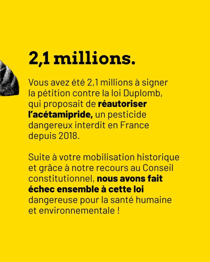 Nous nous tenons aux côtés des associations, des ONG et des collectifs de victimes des pesticides. Je tiens à saluer la mobilisation du collectif Cancer colère et particulièrement de sa co-fondatrice Fleur Breteau sur ce sujet.