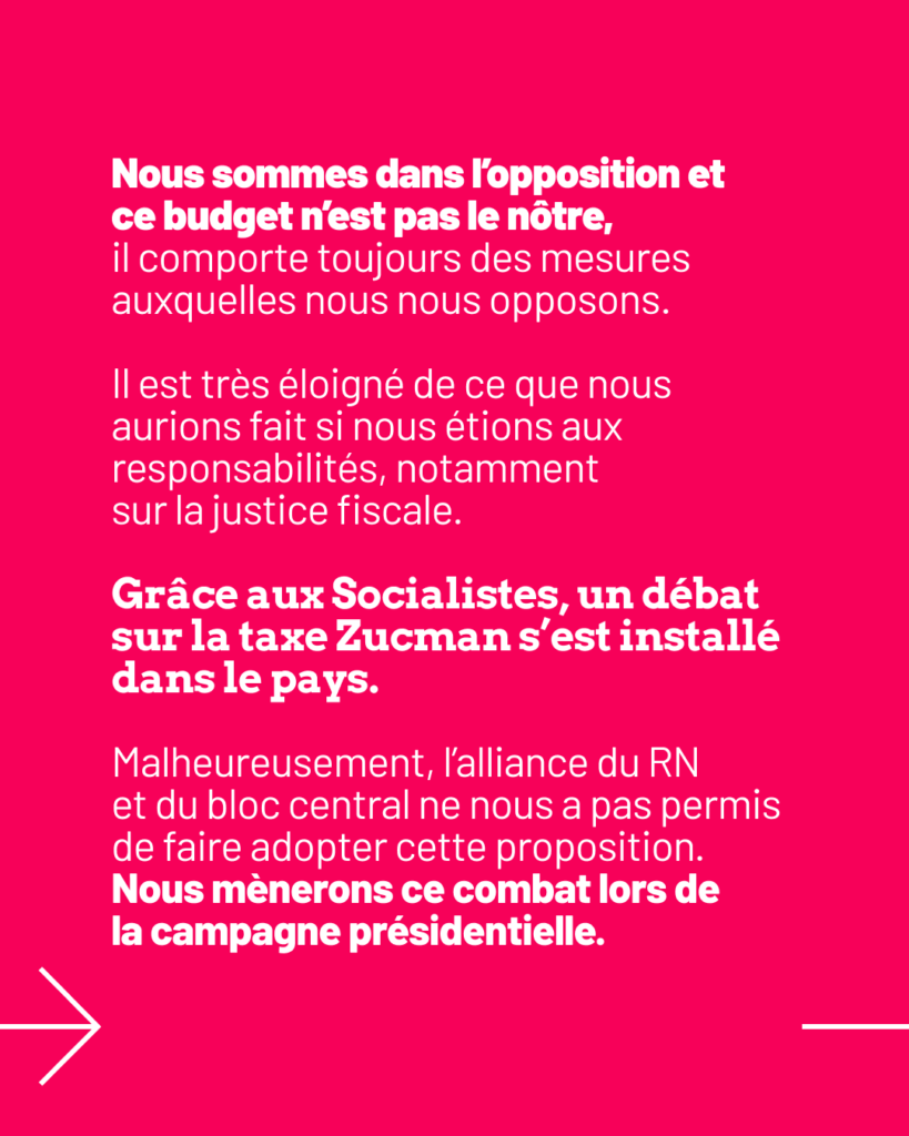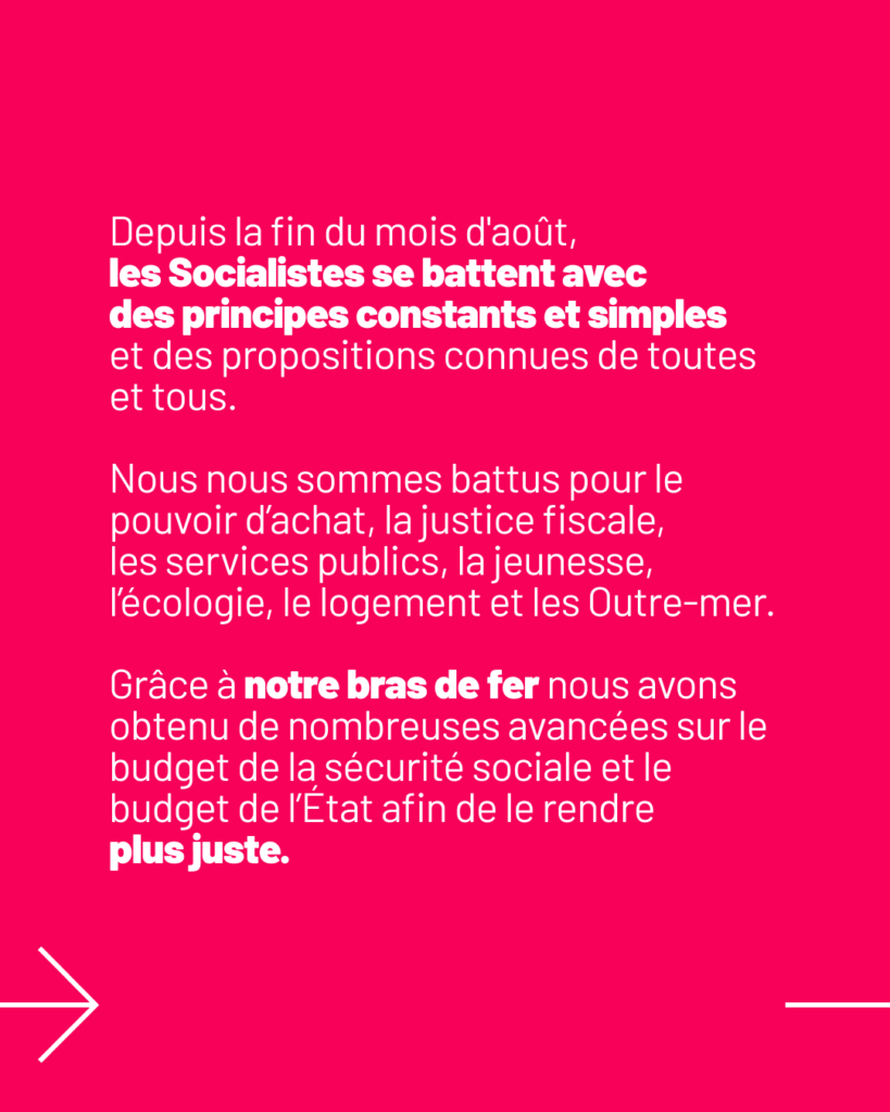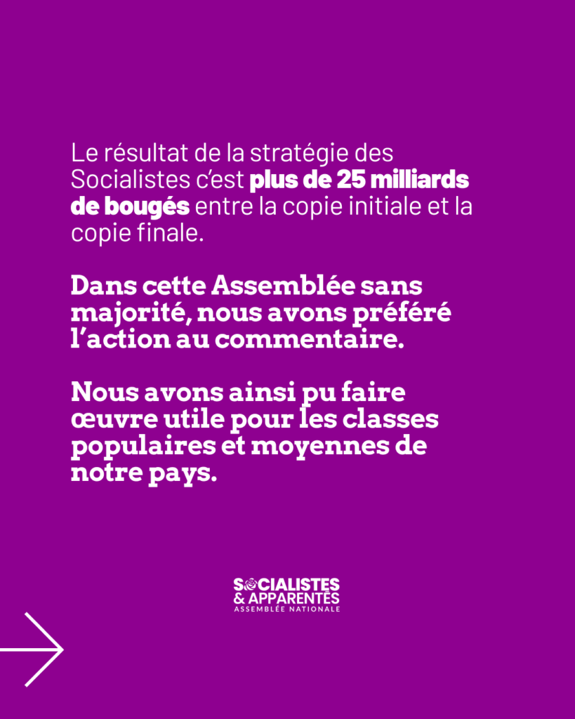 Depuis le mois d’octobre, les députés du groupe Socialistes et apparentés ont décidé de négocier avec le Gouvernement pour corriger au maximum ce budget injuste. Après plusieurs mois d’âpres négociations et de combat, nous avons obtenu certaines avancées permettant de rendre ce budget plus juste pour les classes moyennes populaires.