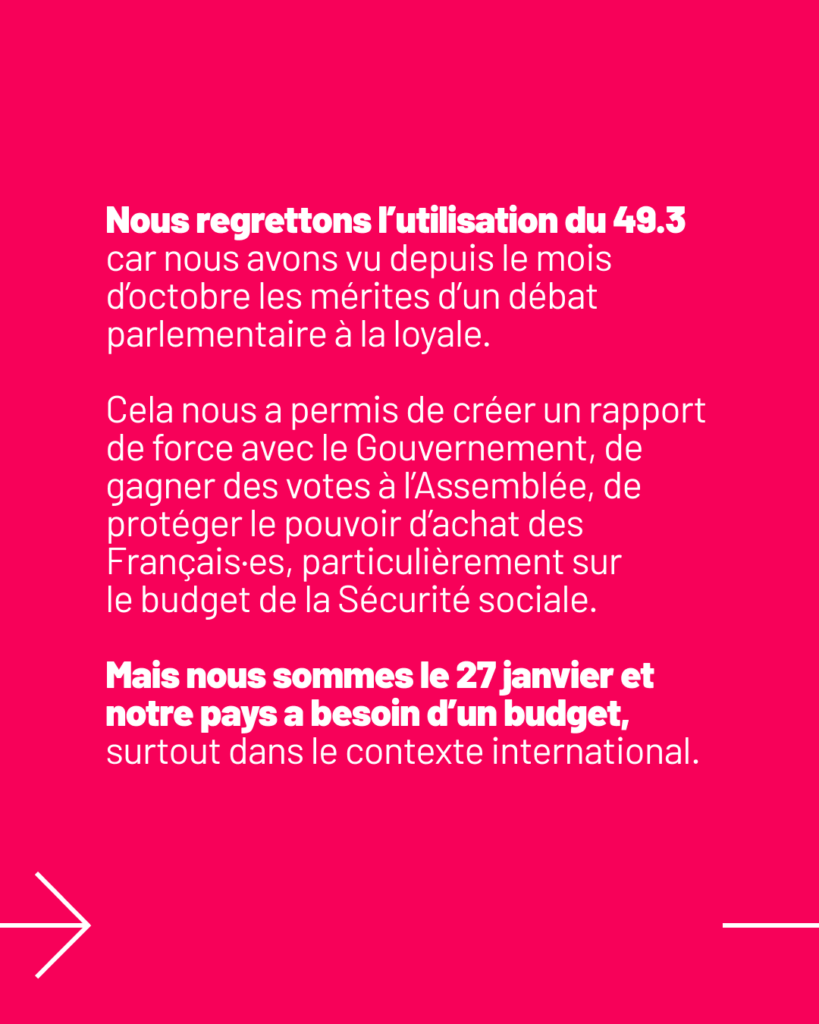 Je n’ai pas voté les motions de censure du Gouvernement sur le budget. Je vous explique pourquoi.