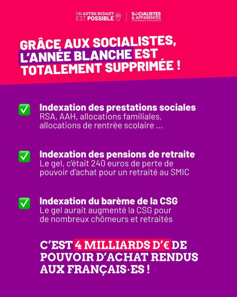 Grâce à la mobilisation des socialistes en Commission des finances, en Commission des affaires sociales, dans l’hémicycle et grâce au rapport de force que nous avons instauré avec le Gouvernement, nous avons réussi à éviter le pire pour les Françaises et Français, en obtenant :